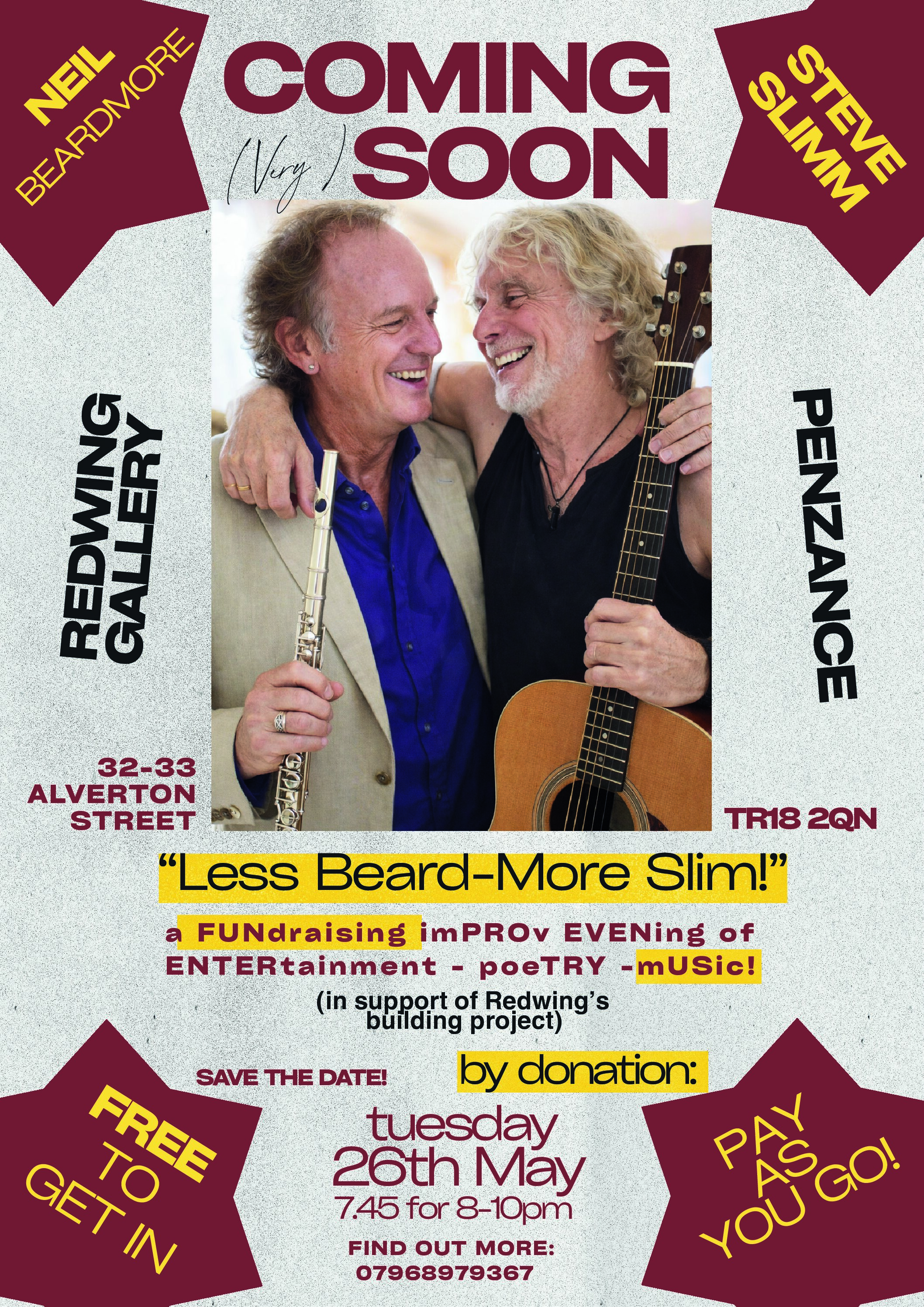 Witness the collaboration of two award winning Jazz musicians in this magical night of Free form Jazz, starring Niel Beardmore and Steve Slimm! Don’t miss this show spectacle this Tuesday 26th May from 8pm to 10pm only at Redwing Gallery!
